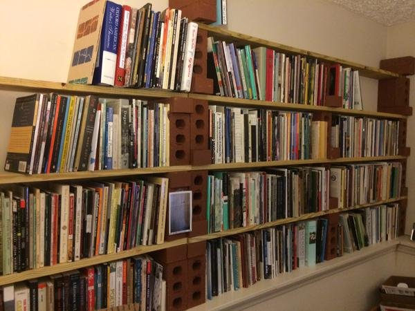 My project today: build new bookshelves. The cheapest possible bookshelves. http://t.co/JTx2RVnv5I