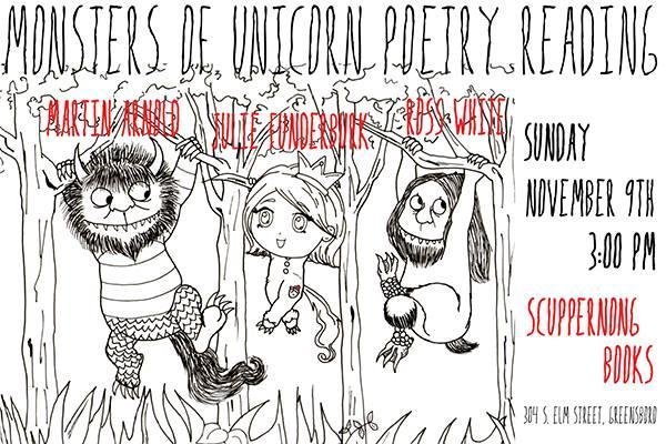 Love this poster that @terrylkennedy made for the upcoming MONSTERS OF UNICORN reading on November 9. http://t.co/GOGnrUx49K